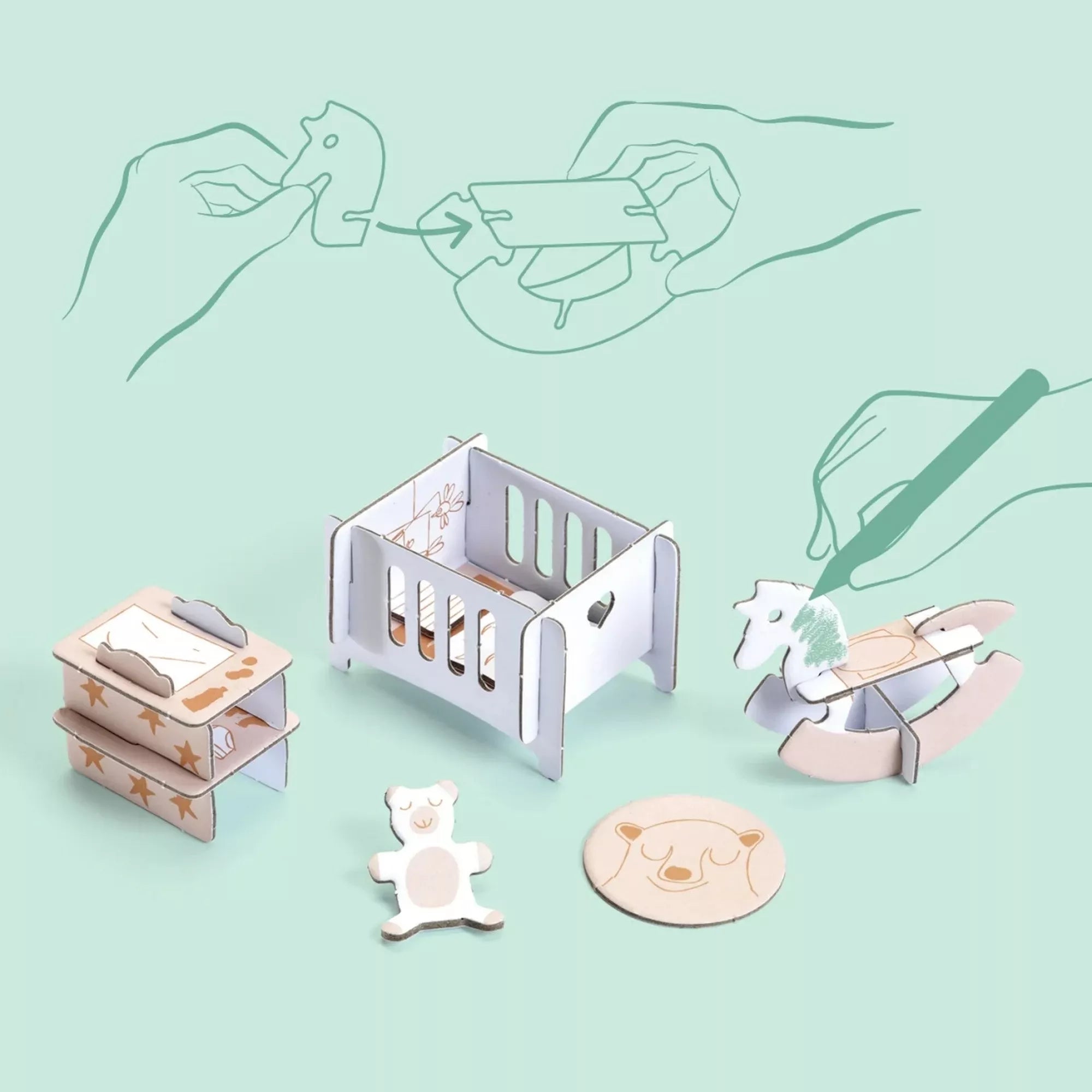 Djeco: Casă de păpuși de asamblat și de colorat