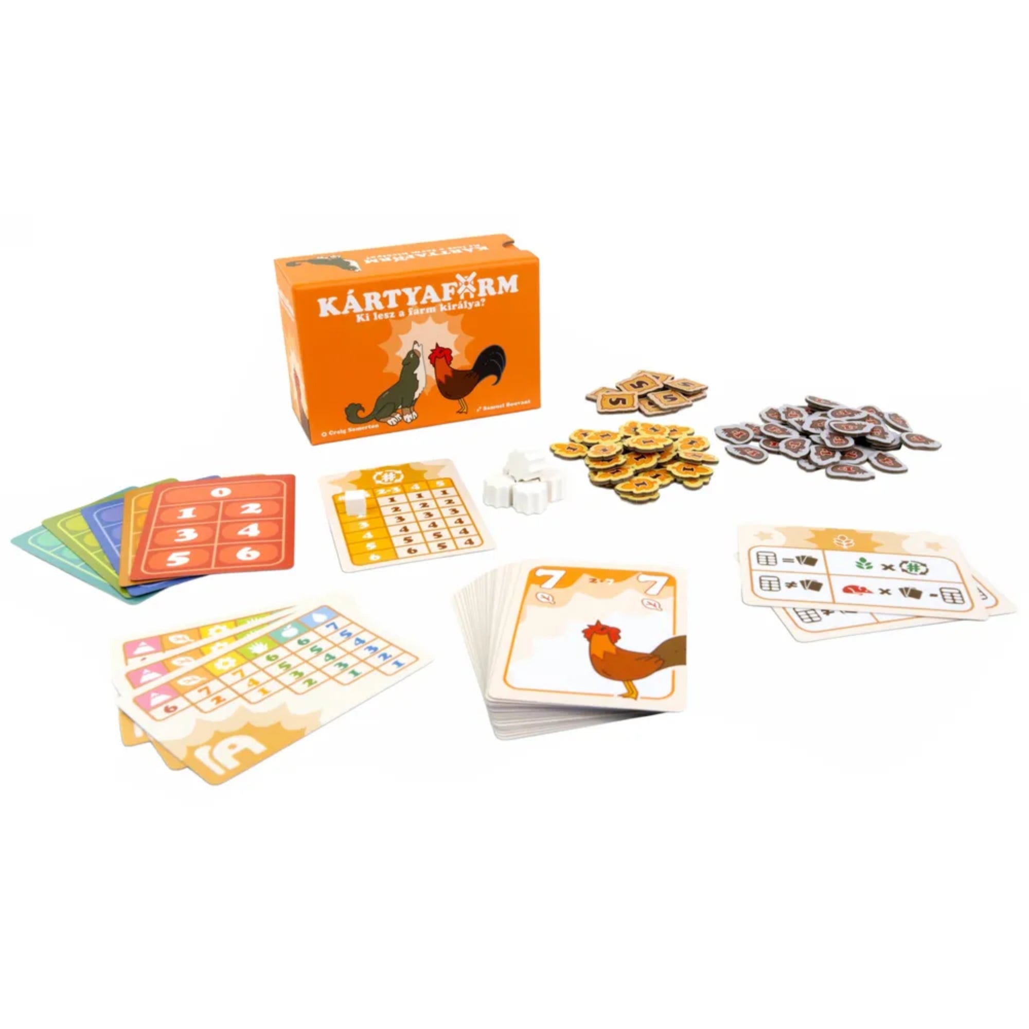 Kártyafarm este un joc de cărți original de tip trick-taking, în care animalele de la fermă concurează pentru coroana supremă. Pentru a câștiga, nu este suficient să joci bine cărțile – trebuie să estimezi exact câte trucuri vei câștiga și, în același timp, să le încurci planurile adversarilor.